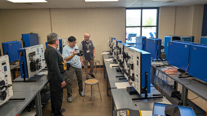 We had a great time in a relaxed setting with beautiful weather. There weren't nearly enough donuts or cream for the coffee (something to fix next time), but there was lots of coffee and four people went home with door prizes. Lots of people had an opportunity to tour the Automotive Technology Building and meet some of the current students and teachers. We even had a club member record some video. Pictures Below!
